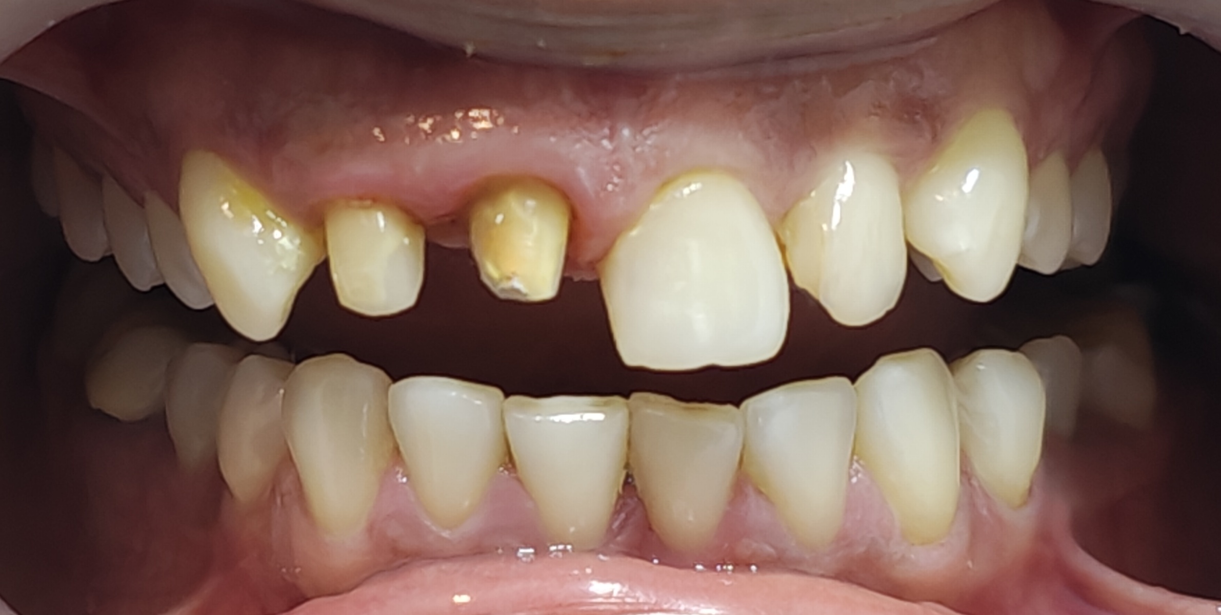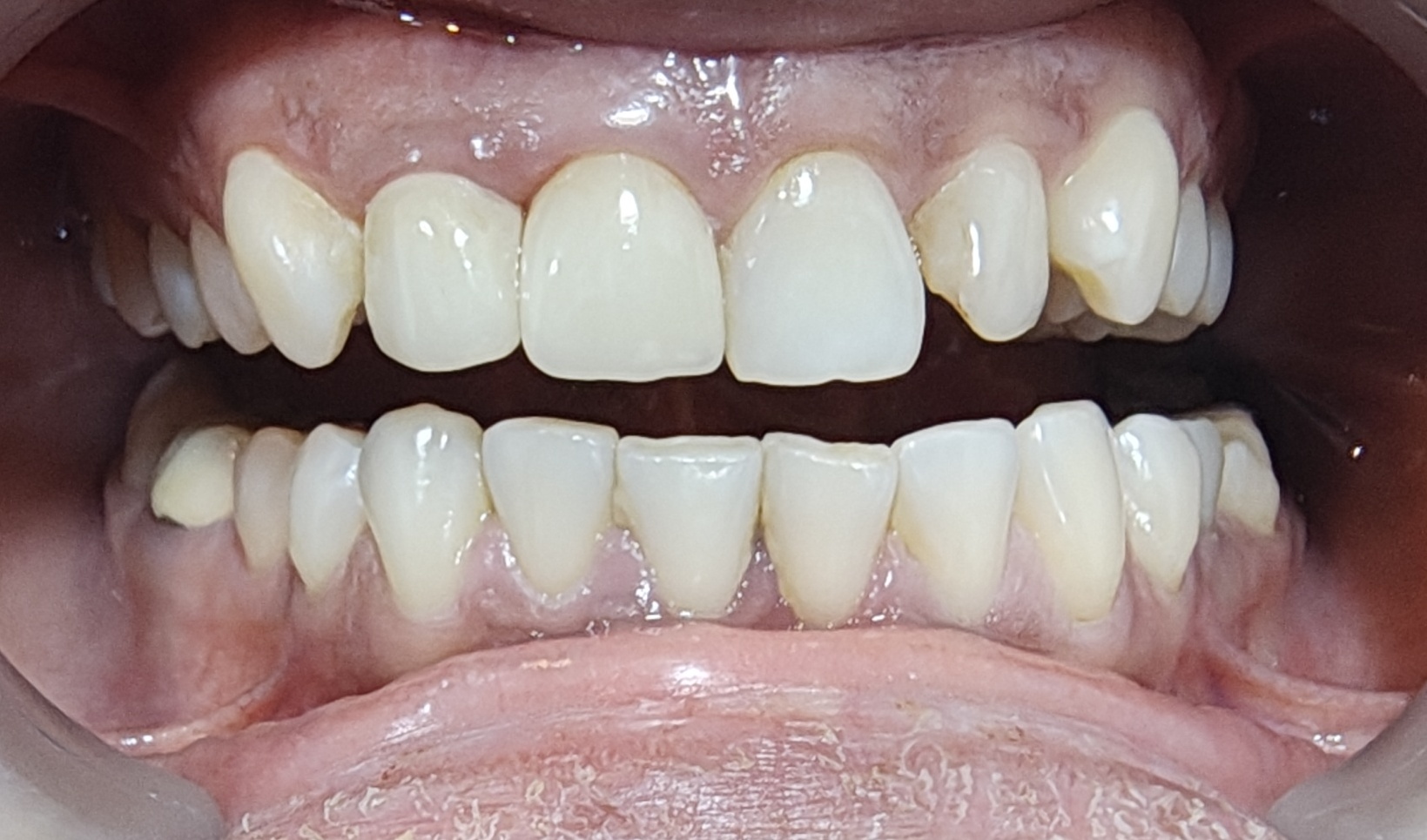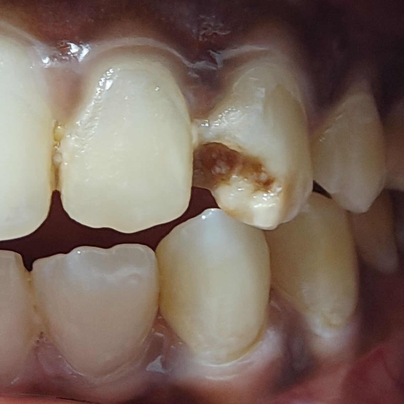 Discolored/Decayed tooth repaired seamlessly with natural-looking composite bonding.
