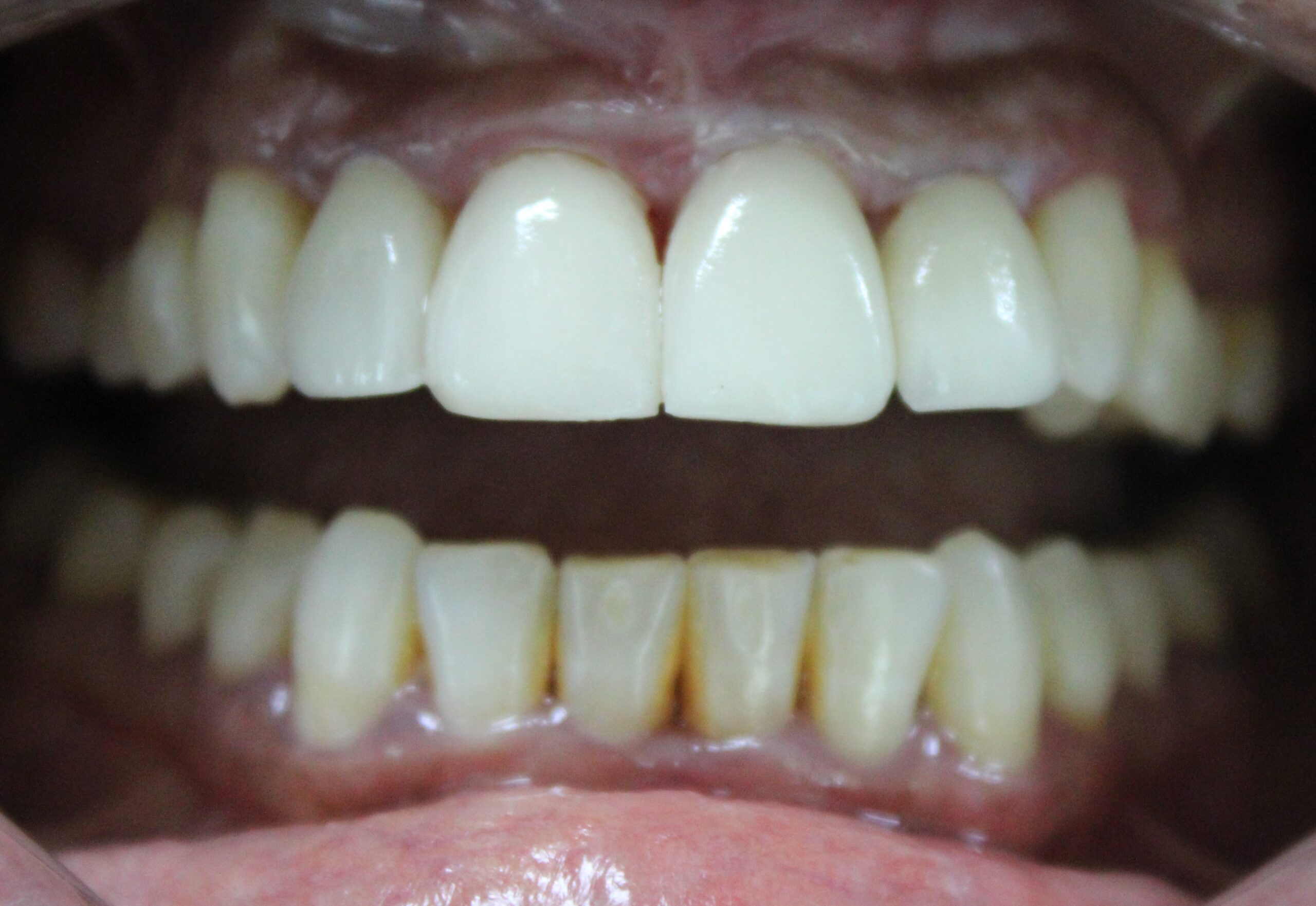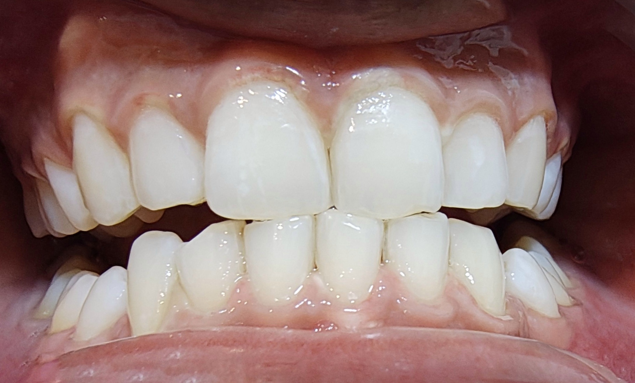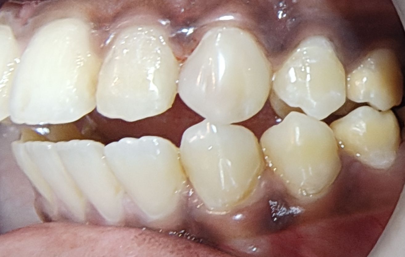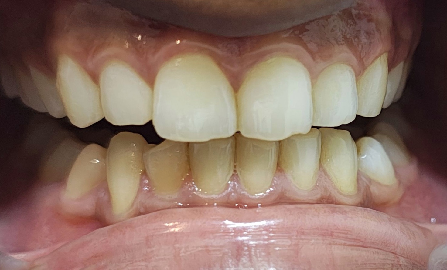Discolored/Decayed tooth repaired seamlessly with natural-looking composite bonding.